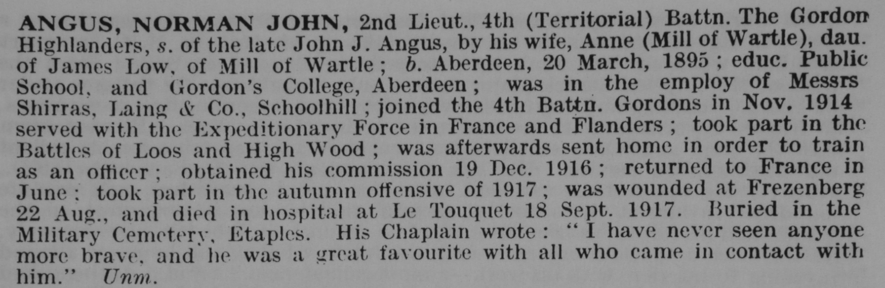 Angus N J 2nd Lt