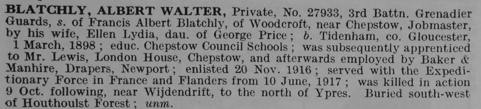 Blatchley A W Pte 27933