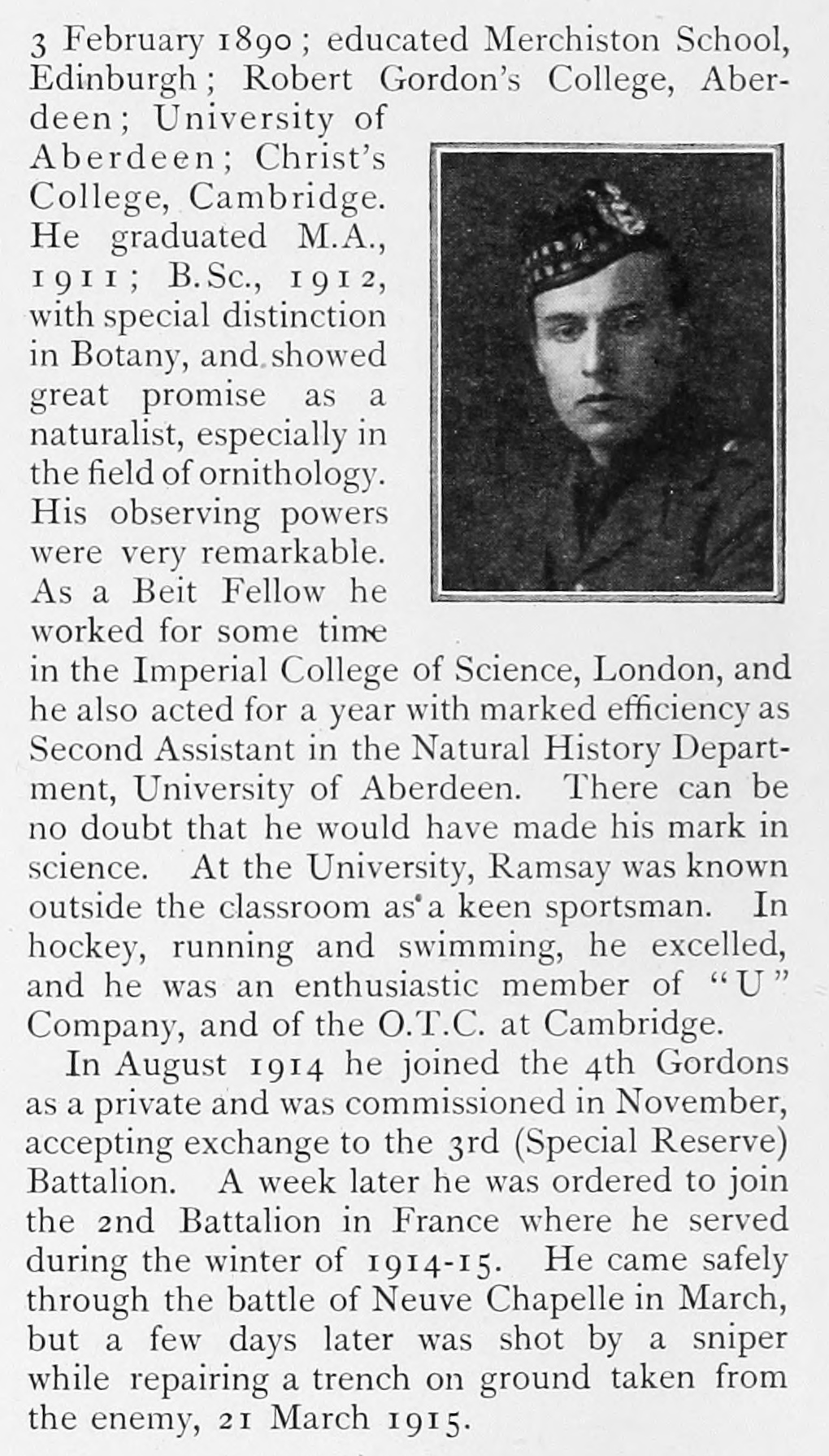 Source : University Of Aberdeen Roll Of Service In The Great War 1914-1919