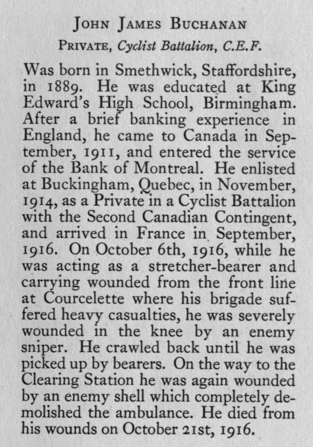 Buchanan J J Pte 92 Canadian Cyclist Battalion