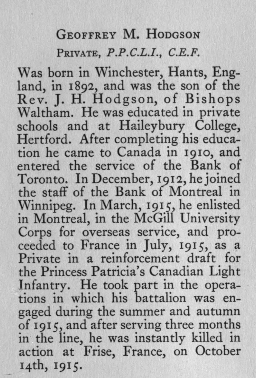 Source : Bank Of Montreal Memorial Of The Great War 1914-1918