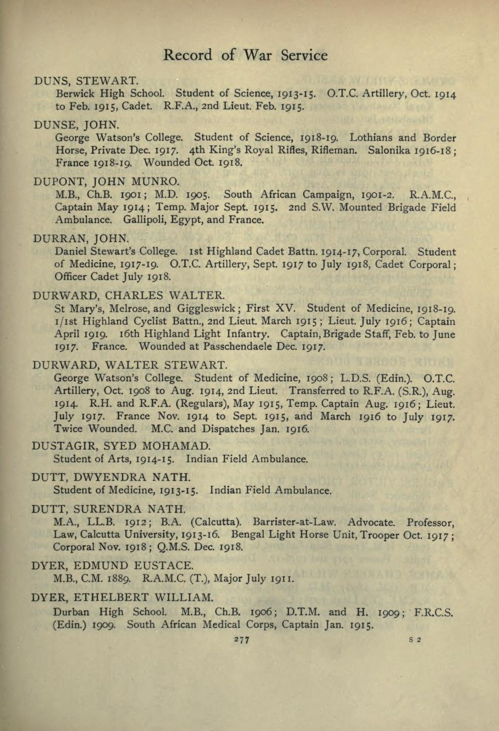 Edinburgh University Roll Of Service