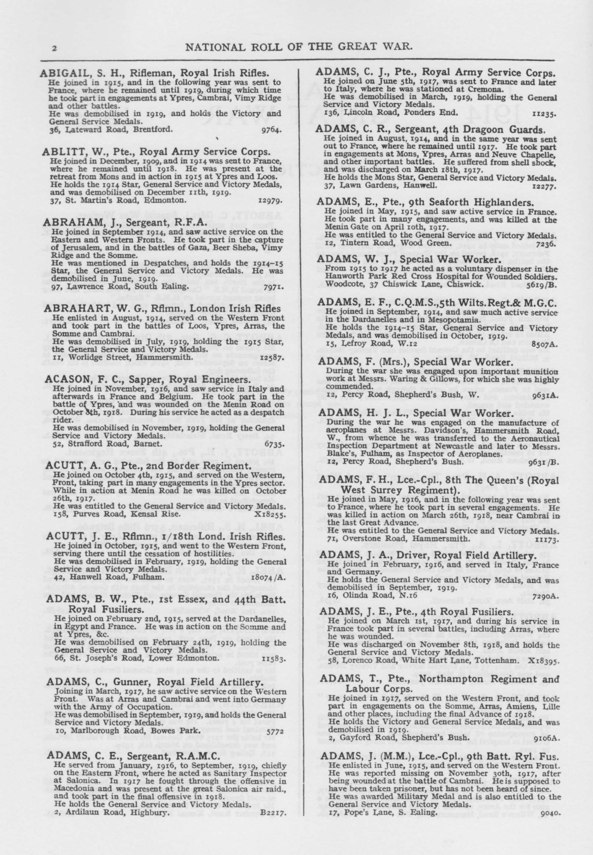 THE NATIONAL ROLL OF THE GREAT WAR 1914-1918