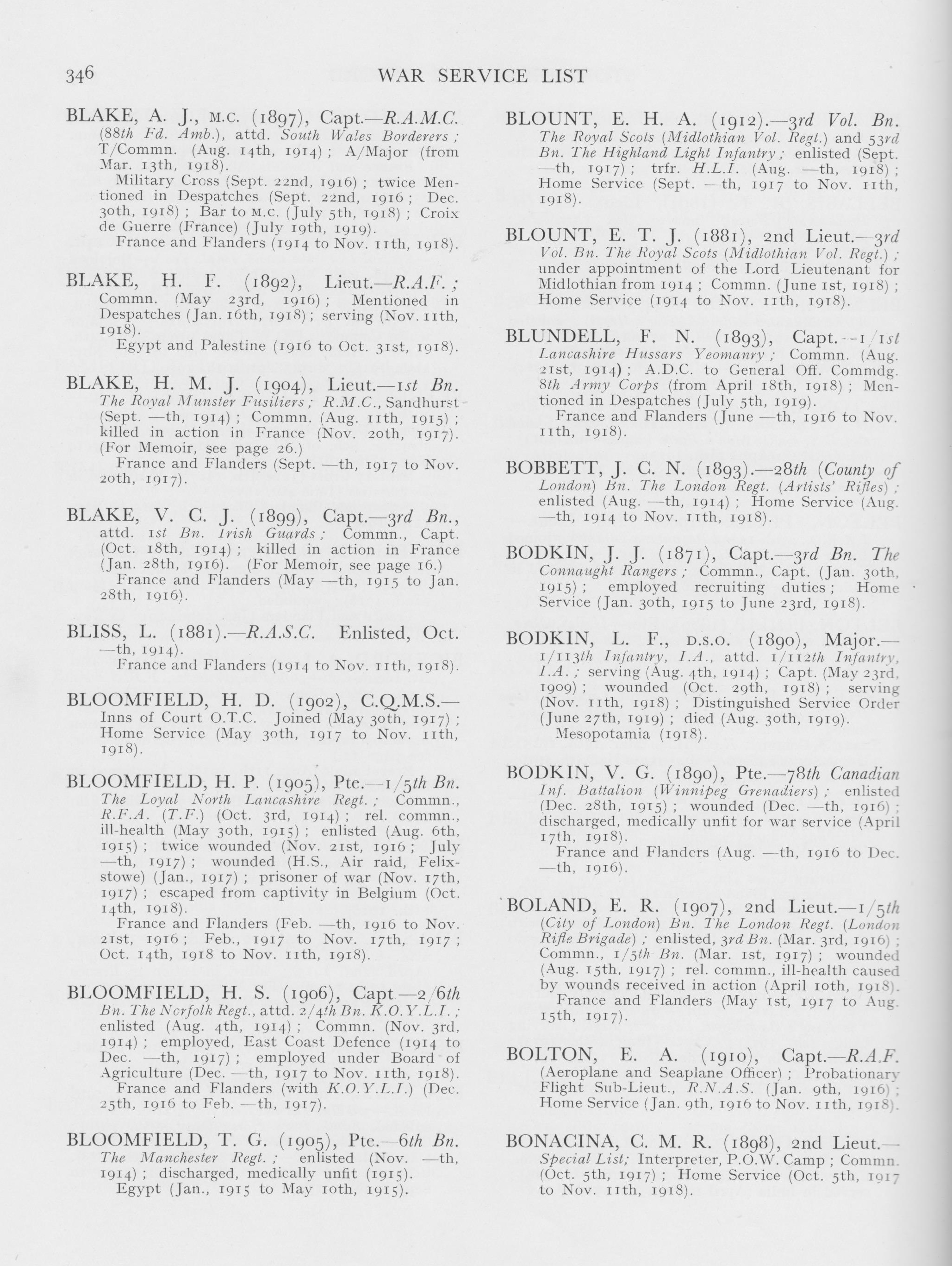 Stonyhurst War Service List 1914-1918 Page 346
