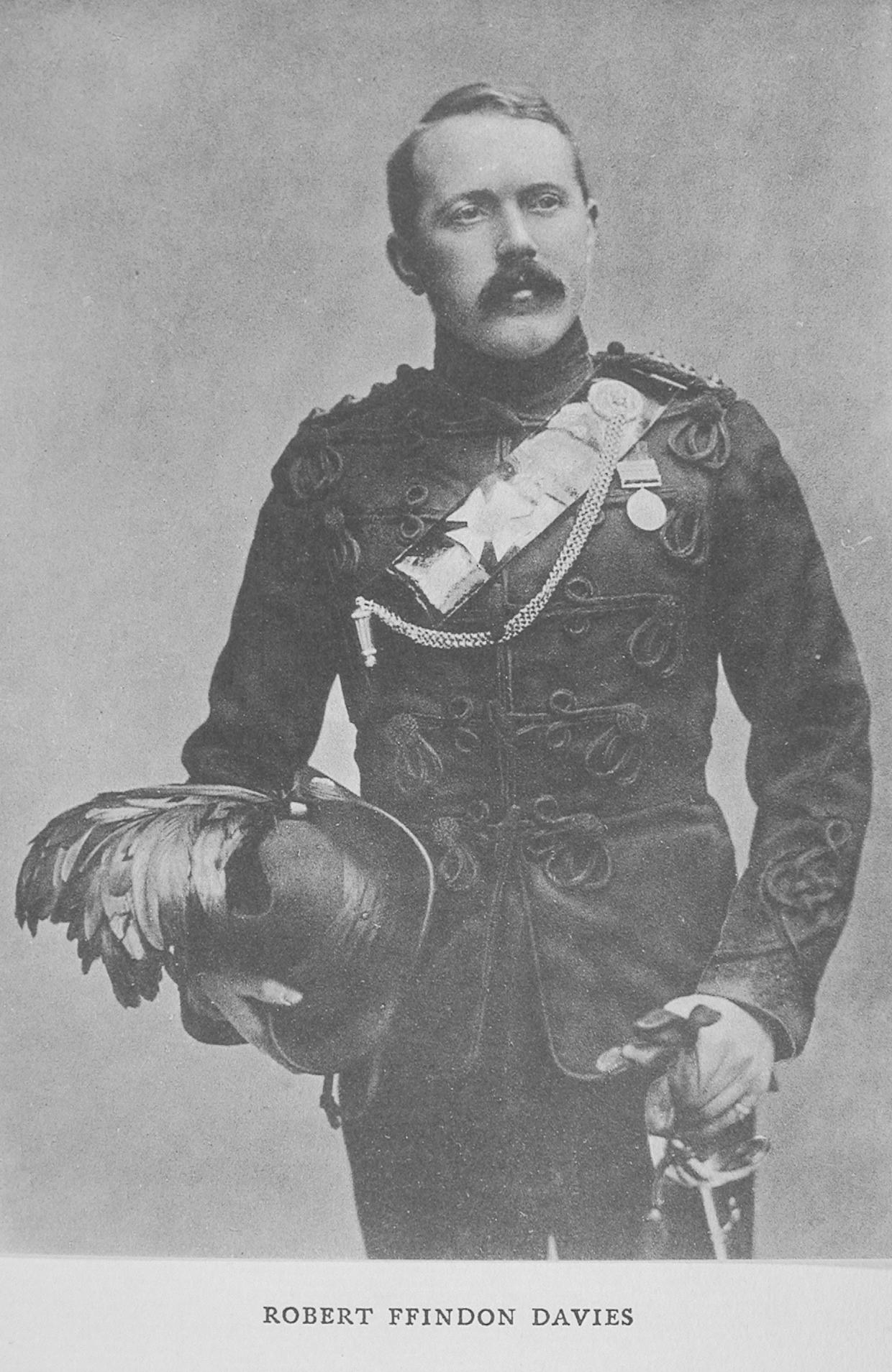 MAJOR ROBERT FFINDON DAVIES London Regiment was the son of Frederick Herbert Davies, a member of the Stock Exchange. He was born in 1877 and educated at Marlborough College. On leaving school he joined that famous shooting corps, the 1st Middlesex V.R.C. and fought in the South African War, where his company was attached to a battalion of the King’s Royal Rifle Corps. He was awarded the South African medal with four clasps.
