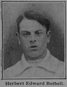 BETHELL, HERBERT EDWARD, Private, No. 27127, Army Veterinary Corps, s. of the late Henry Bethell, by his wife, Helen Mary (-); b. Clapton, London, E., Oct. 1888; educ. London; was a Carman; volunteered for active service, but was rejected seven times; enlisted 10 May, 1916; discharged as medically unfit 27 Sept. 1917, and died at All Saints’ Hospital 27 June, 1918, from illness contracted while on military service. Buried in the Tottenham Cemetery. London, N. He m. at Tottenham, N., in 1913, Martha (12, Albert Road, St. Anne’s Road, Tottenham, N.), dau. of Edward George Thomas Thorpe, and had two daughters: Elizabeth Rose and Violet Maud.