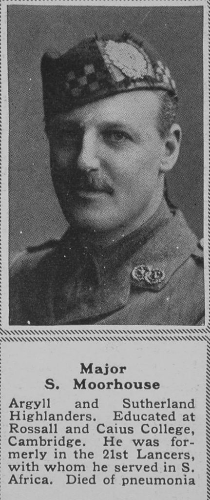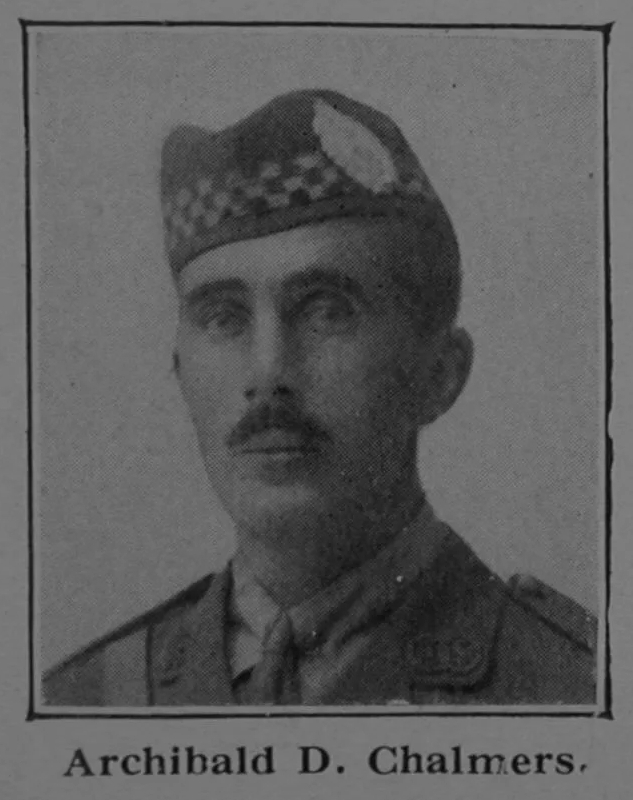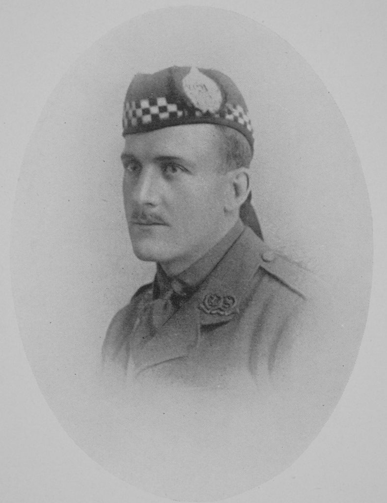 He was in the School from 1898 to 1901, and went to South Africa in 1902. In October, 1914, shortly after the outbreak of War, he joined the 18th Mounted Rifles and served through the rebellion which then took place in the colony. He subsequently received a Commission and was appointed Adjutant of Hay’s Commando, serving through the German South-West African Campaign. On the successful conclusion of this he returned home in 1916, and obtained a Commission in the 8th Argyll and Sutherland Highlanders.