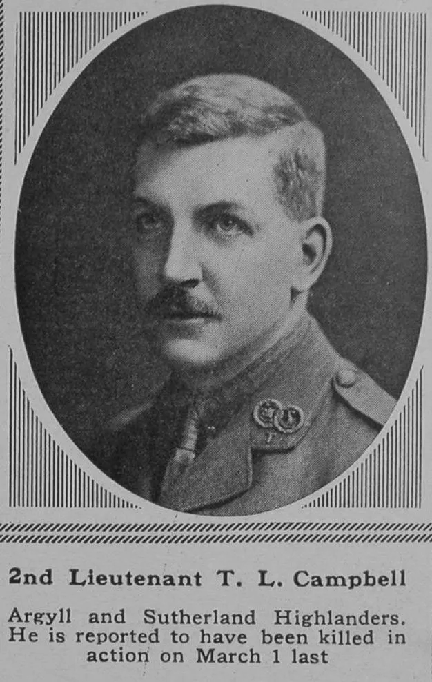 Campbell T L 2nd Lt 8th Attd 1st Argyll And Sutherland Highlanders