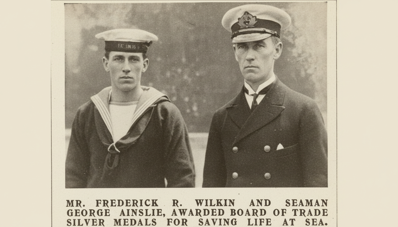 Ainslie G Seaman Board Of Trade Silver Medal HMT Cape Transport RNR And Wilkin F R 2nd Officer Board Of Trade Silver Medal SS Chilka