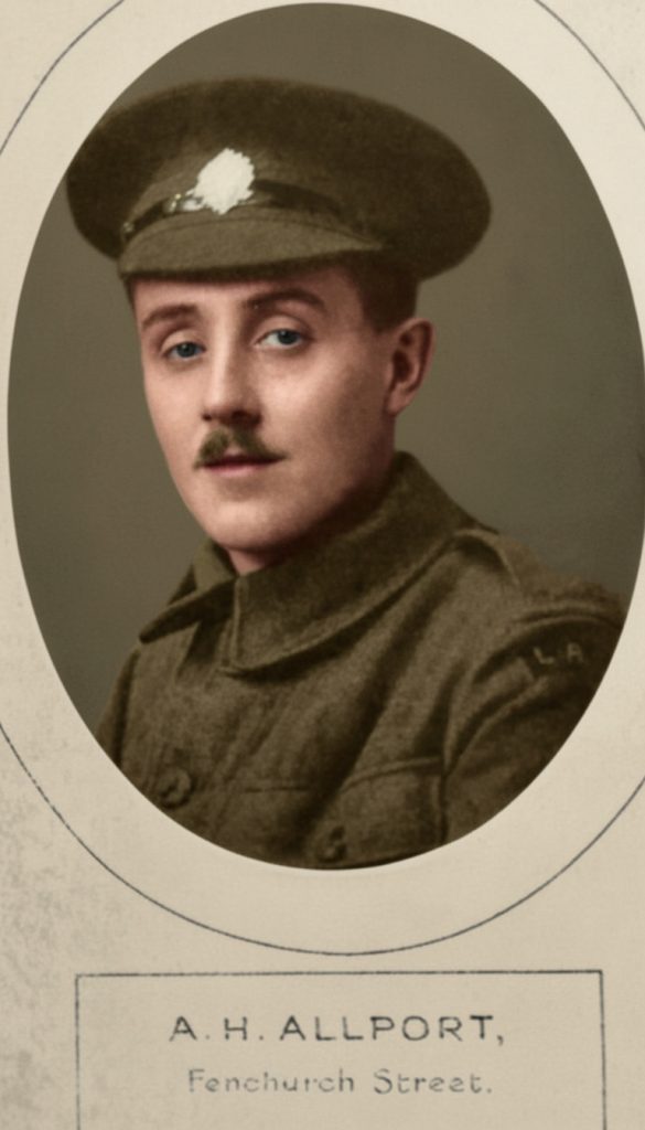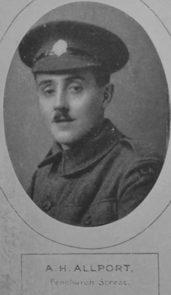 ALLPORT, ALAN HIATT, Rifleman, No. 303178, 5th (City of London) Battn (London Rifle Brigade) The London Regt. (T.F.), 2nd s. of Denison William Allport, of Townley Road, Dulwich, London, S. E., by his wife, Harriet Elizabeth, dau. of Thomas Hiatt; b. Camberwell, London, S. E., 29 Sept. 1887; educ. Wilson Grammar School there, and the Art School; enlisted 15 Dec. 1915; served with the Expeditionary Force in France and Flanders from Dec. 1916, and was killed in action at St. Leger 17 June, 1917; unm.