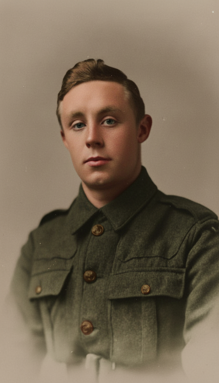Born 15th October, 1896. He joined the London Rifle Brigade early in 1914, and left for France with his battalion in November, 1914. He was in and out of the trenches throughout the winter, except for a short period in hospital with frozen feet, until killed in action by shell fire on 3rd May, 1915, while attending to some wounded comrades.