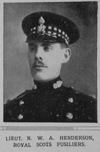 In 1913 he went up to Oriel College, Oxford. At the beginning of the War he joined the Artists’ Rifles and went with them to France, where he was given a Commission in the and Battalion of the Royal Scots Fusiliers. In December, 1914, he was invalided home after an attack of pleurisy, caught in the trenches. Early in 1915, after taking out a draft of men from Ayr, he was transferred to the 1st Battalion of the Regiment.