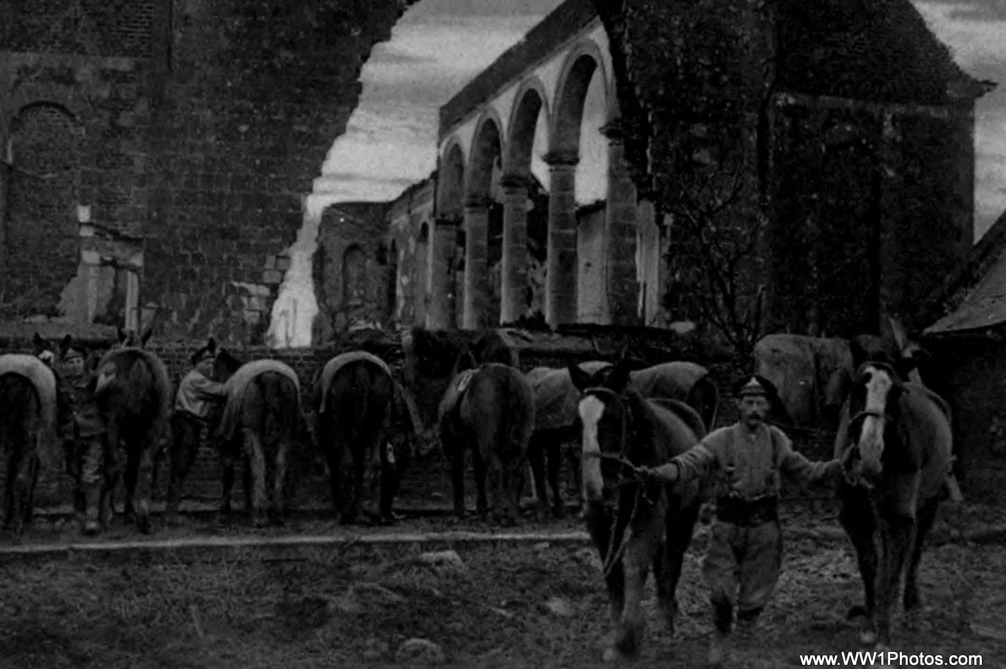 Royal Field Artillery Horses In The Ruins Of A Church |