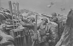 ![]() British Soldiers In France Firing A Rocket To Direct Their Artillery |